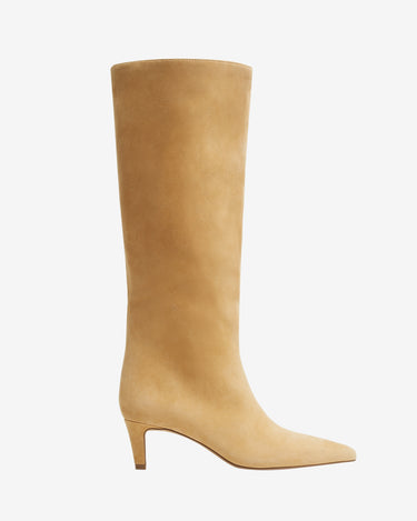 Say hello to Selma—the tall boot that makes a statement without saying a word. Crafted in buttery suede with a pointed toe and subtle kitten heel, it’s the perfect mix of elegance and ease. Pair it with dresses or denim to instantly elevate your look.