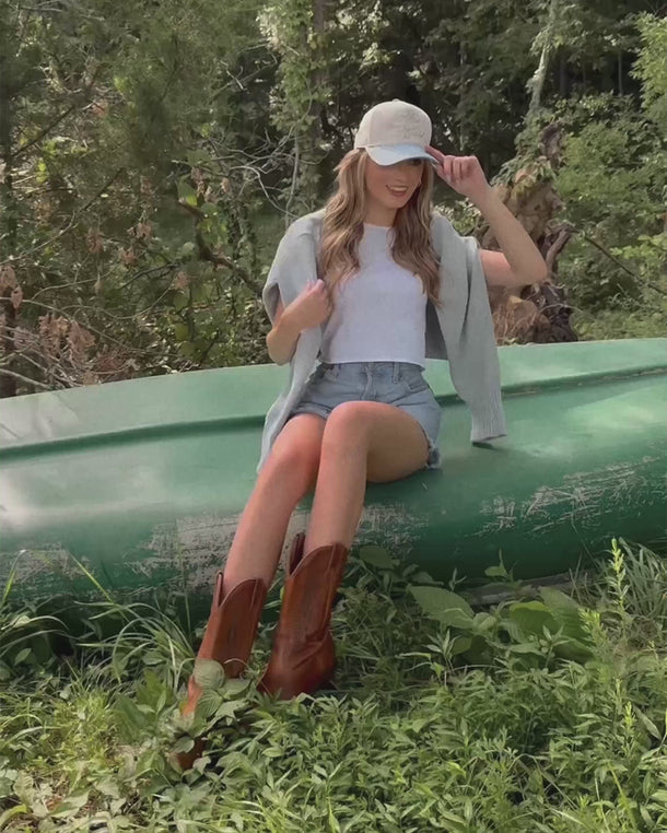 This one-of-a-kind snapback is where Southern charm meets Western edge. Designed in collaboration with Rustler Hat Co., the “Howdy Darlin’” hat features a soft script front, premium suede, and a custom structured fit for everyday wear. From tailgates to town squares, this hat tops off any outfit with laid-back ease and a wink of personality. Designed in Nashville and finished with signature Draper James charm, it’s the ultimate blend of heritage style and modern flair.