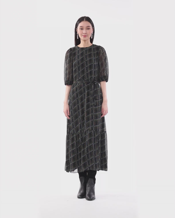 Sophie Tie Waist Midi Dress in Dainty Check