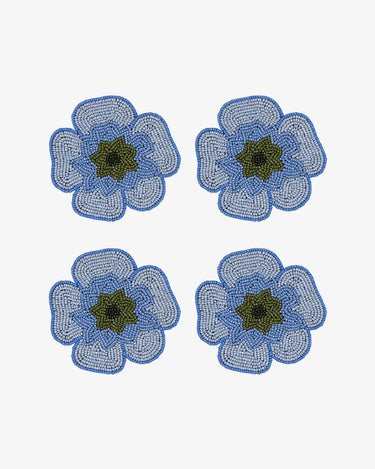 When your guests are over and the iced tea is flowing, protect your antique coffee table from water rings with these adorable beaded coasters! These 4" coasters feature a classic blue hydrangea design and will comfortably hold your water glasses, coffee mugs, and wine glasses in style.