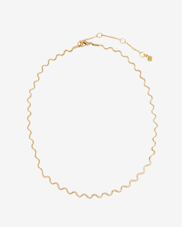 This gold-tone ripple necklace is equal parts timeless and eye-catching, with delicate curves that catch the light from every angle. Whether you're layering it up or letting it shine solo, it’s the kind of piece that effortlessly pulls any look together.