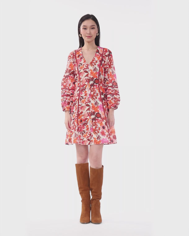 Gwen Long-Sleeve Dress in Botanical Garden
