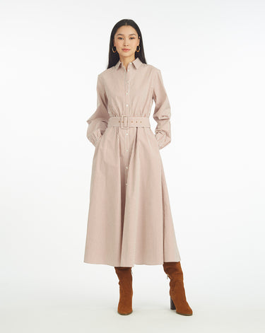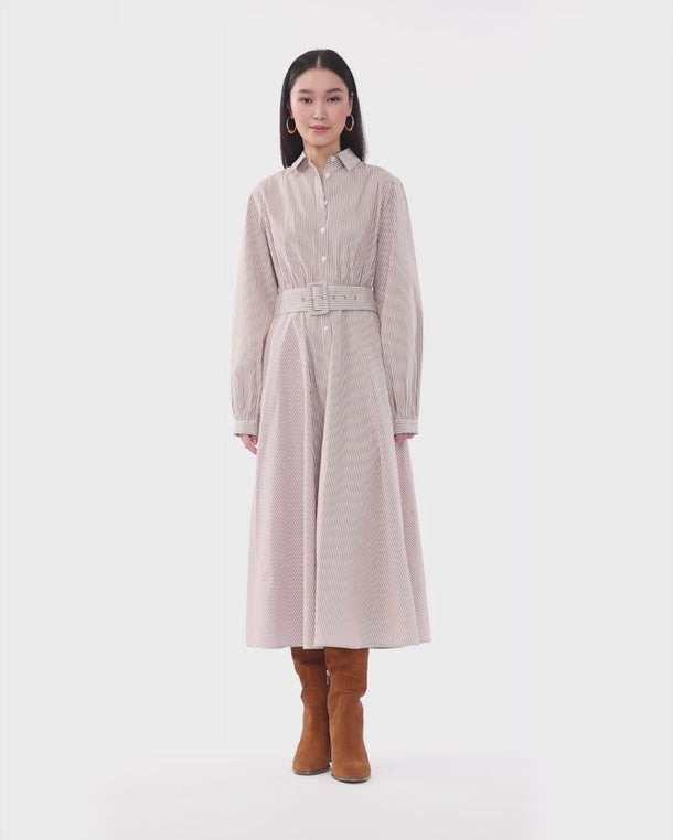 Eliza Midi Shirtdress in Rust Stripe