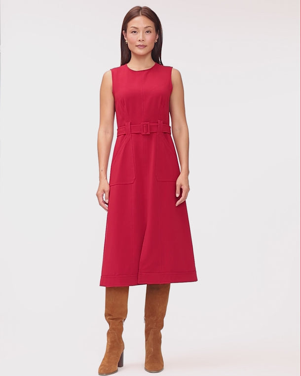The Juno Sleeveless Utility Dress in black is a modern wardrobe staple that blends polish with practicality. Designed with a tailored fit, utility-inspired patch pockets, and a matching belt for waist definition, this dress delivers effortless sophistication with a touch of everyday ease. The midi length makes it versatile for desk-to-dinner styling, while the rich cranberry hue adds seasonal charm. Sleek yet functional, it’s the kind of dress you’ll reach for time and again.