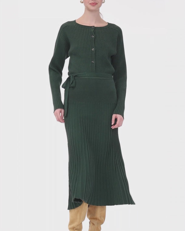 Refined yet effortless, the Luxe Pleated Maxi Skirt is designed with soft ribbed pleats that move beautifully with every step. A pull-on waistband ensures all-day comfort, while the sleek silhouette makes it easy to dress up or down. Pair it with the Luxe Cropped Ribbed Cardigan for a matching set, or style it with a tucked-in blouse for an elevated everyday look.