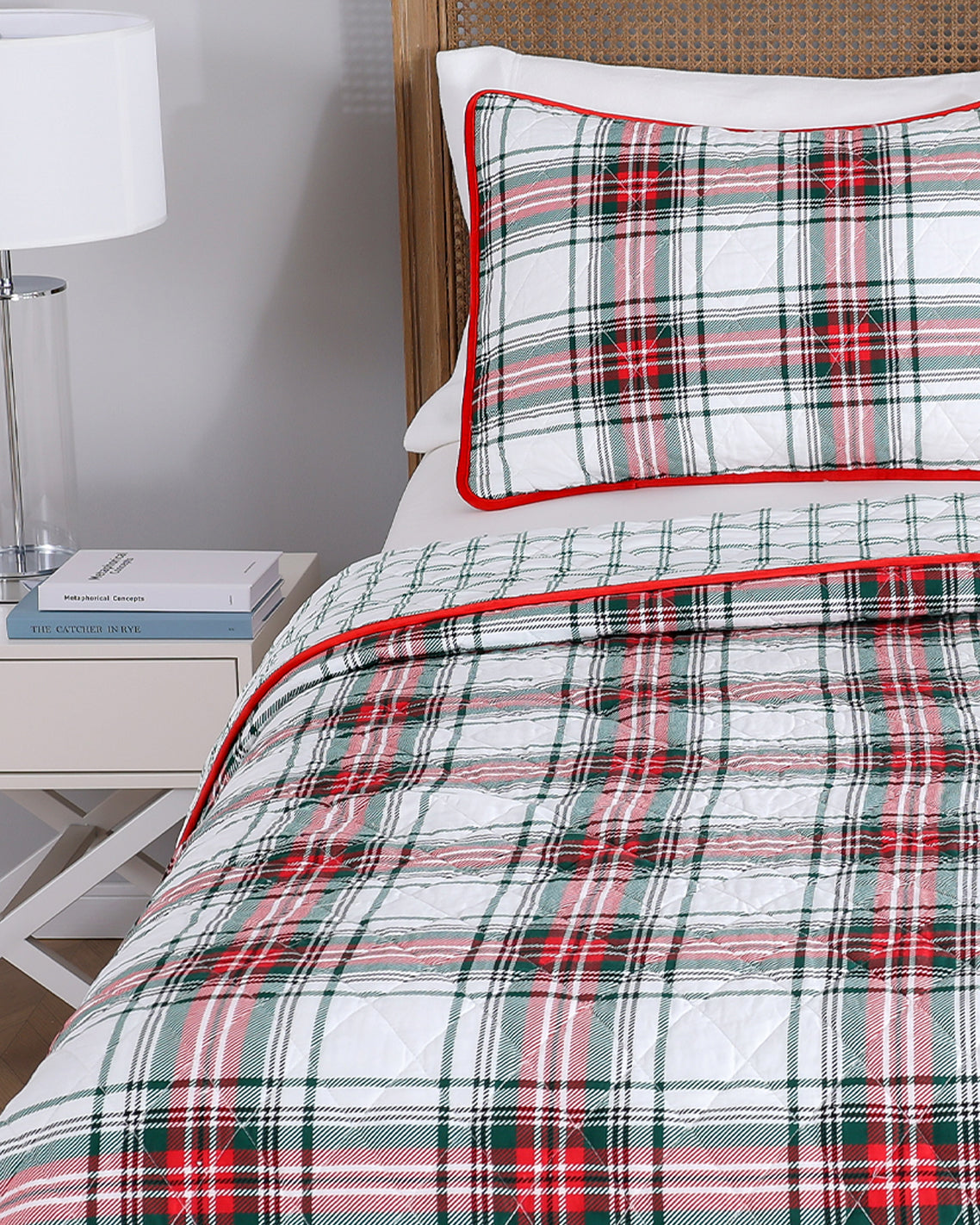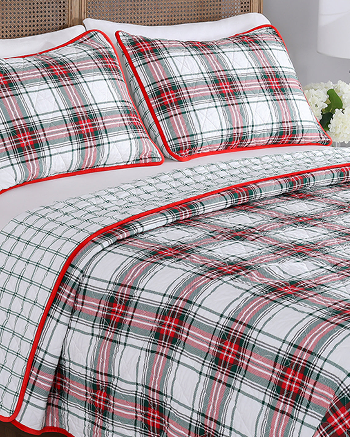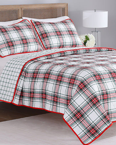 Printed Cotton Holiday Plaid Quilt