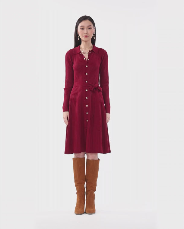 Monroe Knit Midi Dress in Burgundy