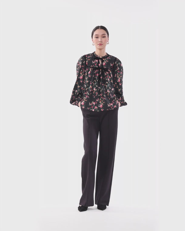 The Long-Sleeve Top in Garden Rose brings just the right amount of romance to your everyday look. Designed in a flowy satin back crepe, it features a statement collar, tie neck, and soft blouson sleeves that dress up or down with ease. Wear it tucked into tailored pants for the office or pair it with your favorite jeans and ballet flats for weekend brunch.