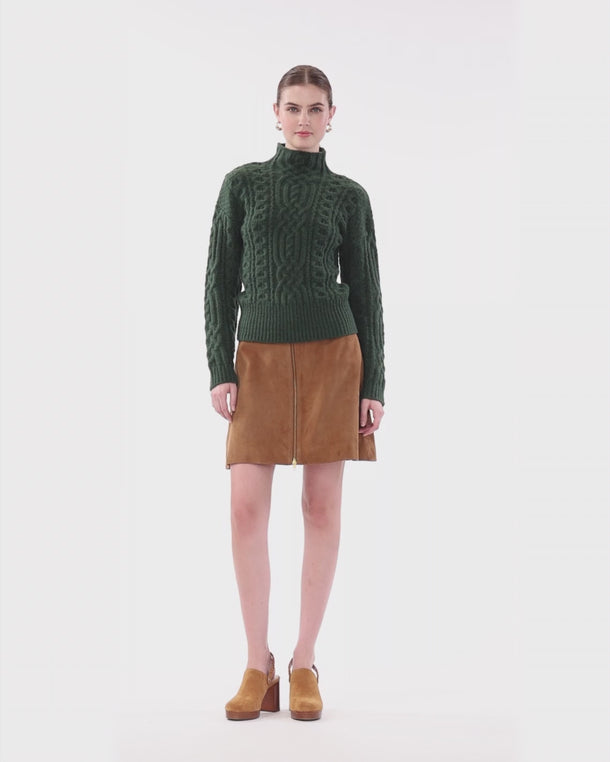 Cozy meets classic. This cable-knit funnel neck sweater is designed with an easy, oversized fit that feels polished yet effortless. The textured knit adds timeless charm, while the relaxed shape makes it perfect for layering all season long. Pair it with a corduroy skirt for a playful take on fall dressing, or style it with denim for everyday wear.