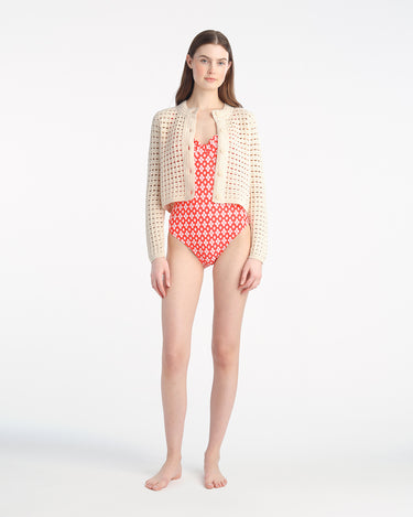 Crochet Sweater Cardigan in Beige